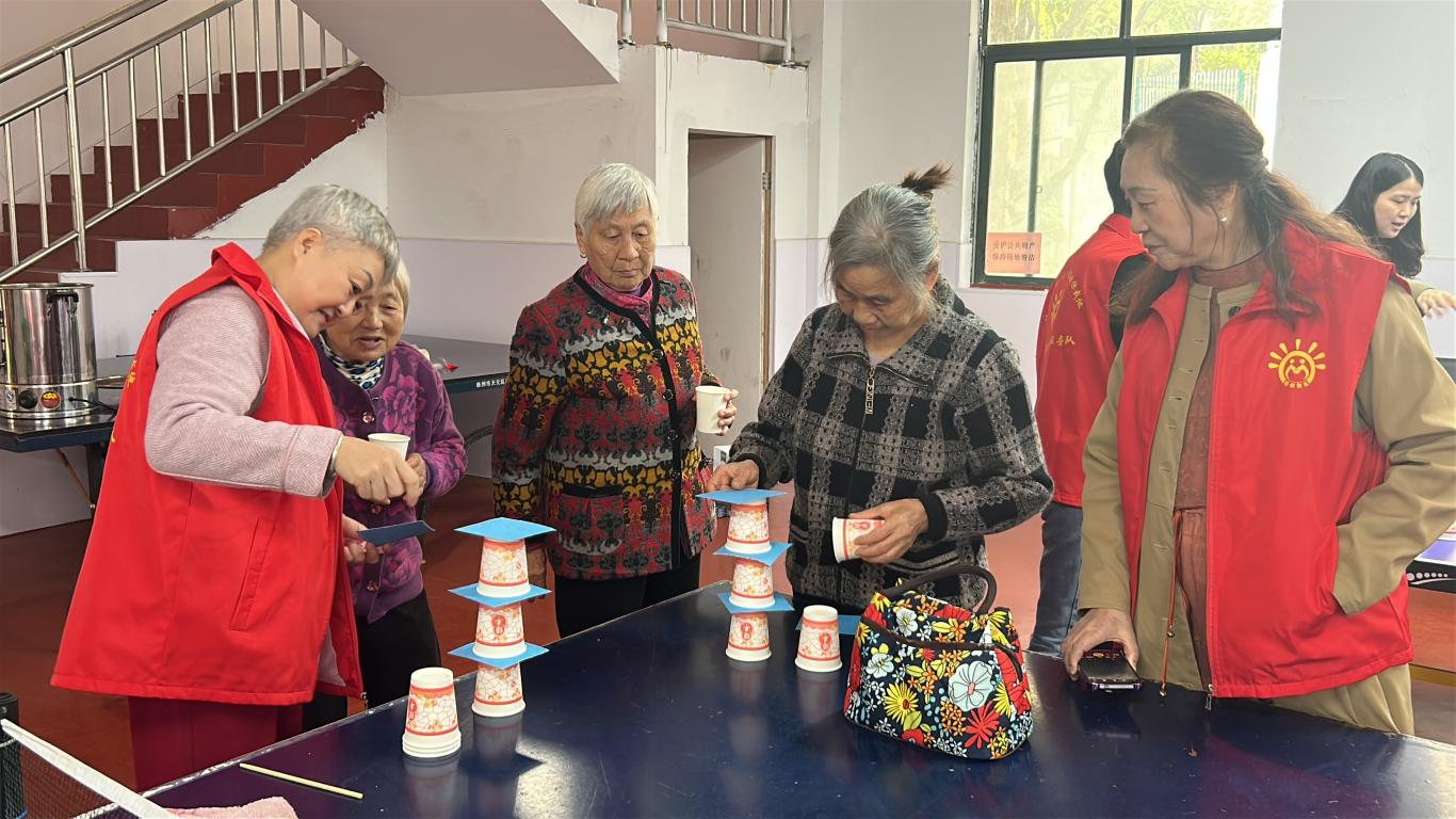 活动在欢快的《小手拍拍》热身操中拉开序幕,老人们通过《筷子接力》等游戏打破隔阂,现场笑声不断。才艺展示环节中,胡奶奶深情演唱《小妹妹送情郎》,谭爷爷用经典儿歌唤醒童年记忆,双人舞《你是我心中的茉莉花》更将气氛推向高潮,展现了银发群体的活力与风采。