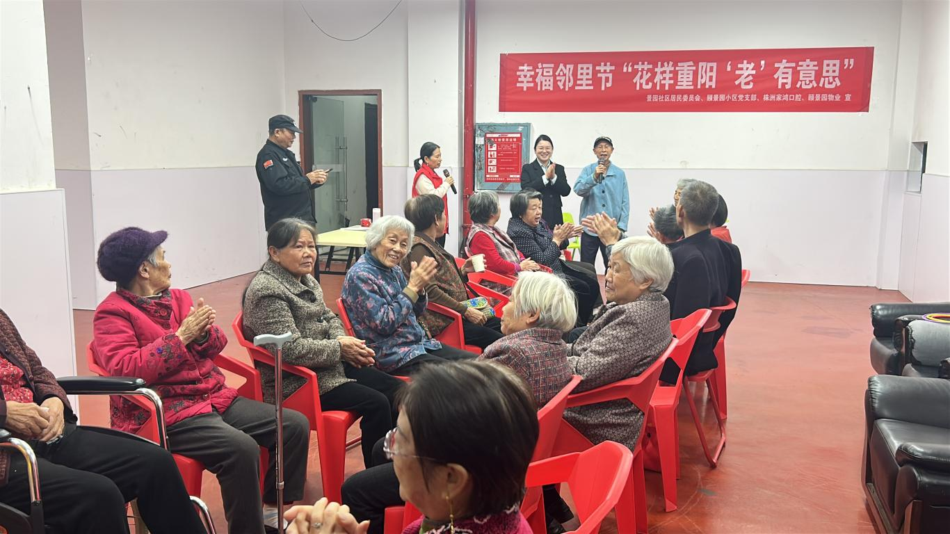 1029日上午,栗雨街道景园社区在颐景园小区成功举办幸福邻里节——花样重阳有意思主题活动,以多元互动传递尊老敬老美德,营造和谐社区氛围。本次活动由社区携手栗雨城颐景园小区物业、睦邻阳光志愿服务队及家鸿口腔共同组织。