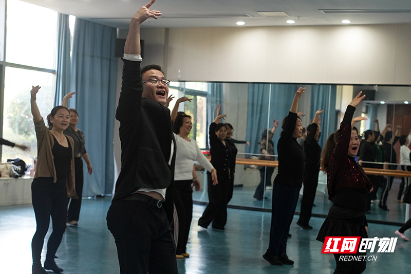 “胯部再放松些,跟着音乐节奏走,咱们跳得开心最重要。”1月6日,株洲市天元区文化馆公益舞蹈教室,阳光透过窗户洒下温暖的光晕,王洪波正俯身耐心纠正社区阿姨们的舞步,温和的语气中透着专业与坚定。