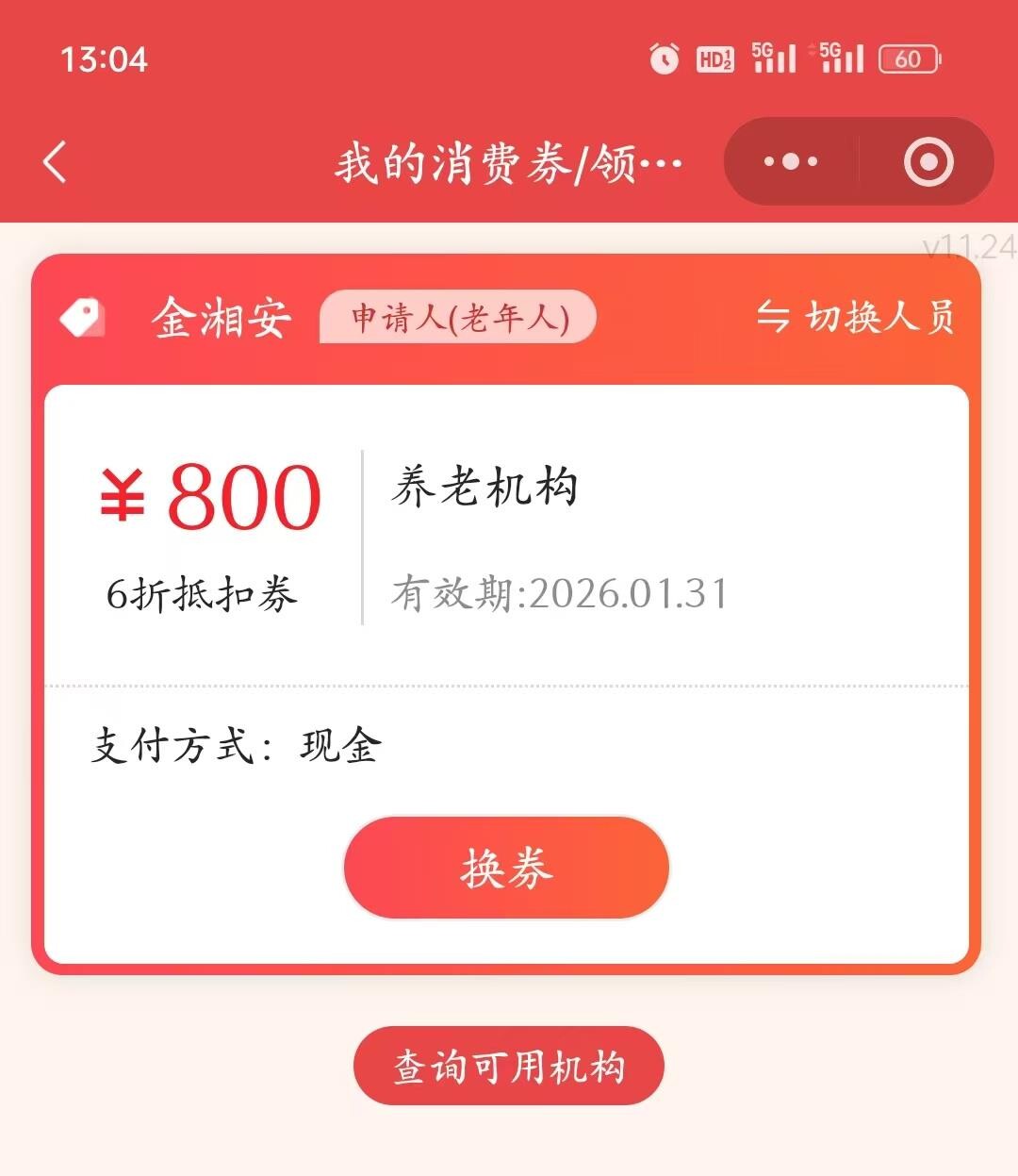 “民政通”平台领取养老消费劵界面