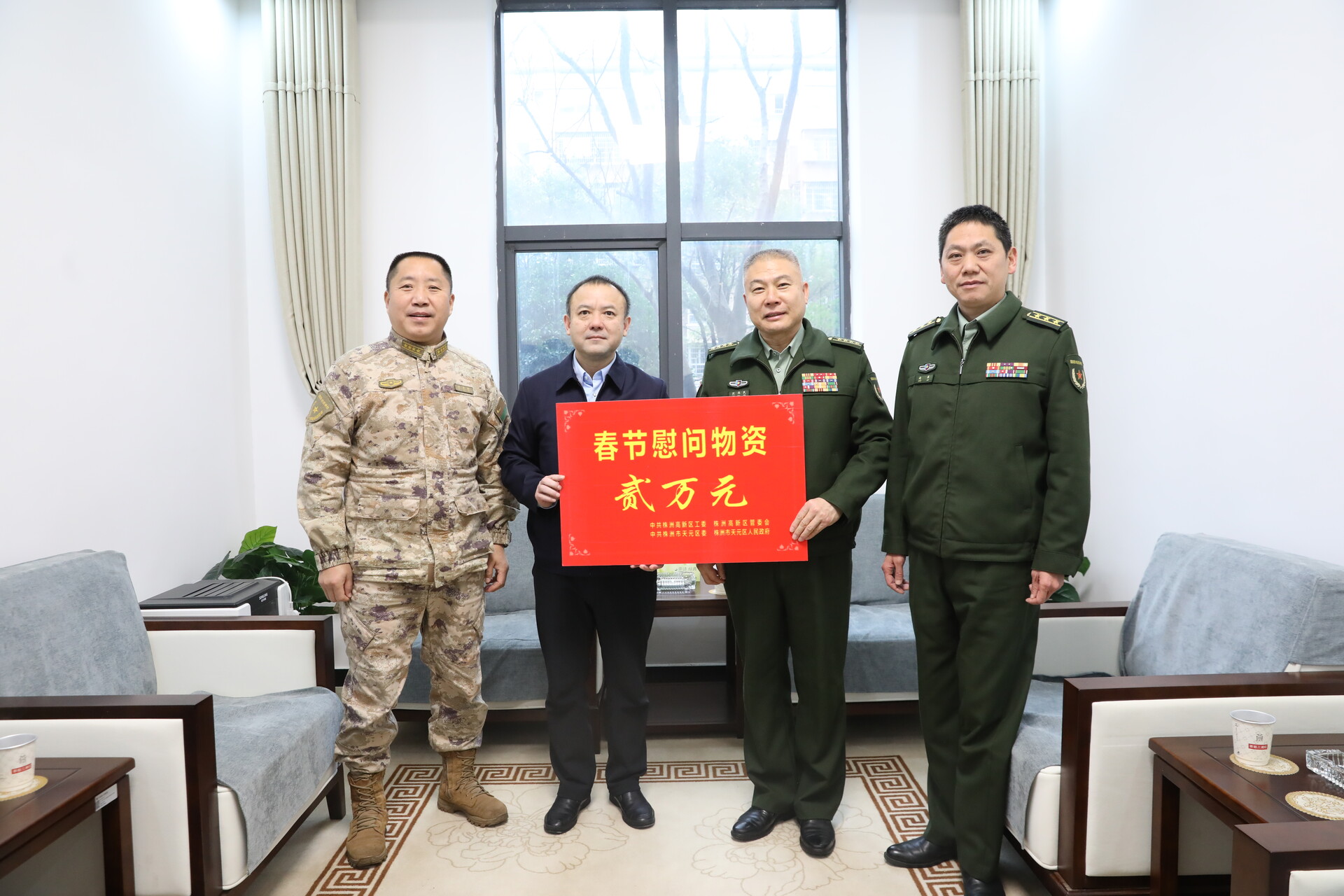 株洲高新区党工委委员、管委会副主任、区人民政府党组成员王洪宇走访慰问天元区人民武装部,向驻区官兵致以节日问候,感谢官兵为区域发展作出的贡献。他表示,高新区、天元区将一如既往做好服务保障,为部队建设创造良好条件;希望区人武部紧扣中心、服务大局,锤炼过硬本领,深化军民同心,在国防动员、后备力量建设等方面再创佳绩,持续巩固军政军民团结良好局面。