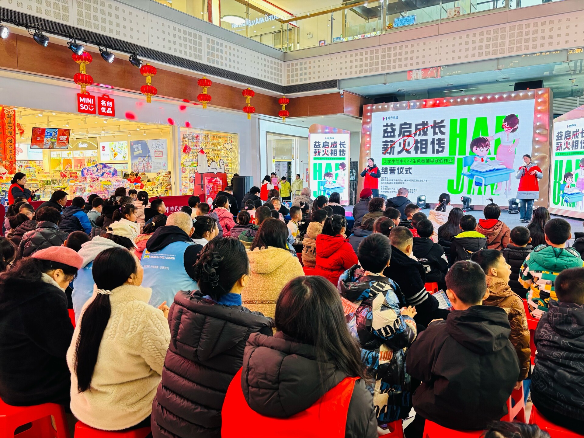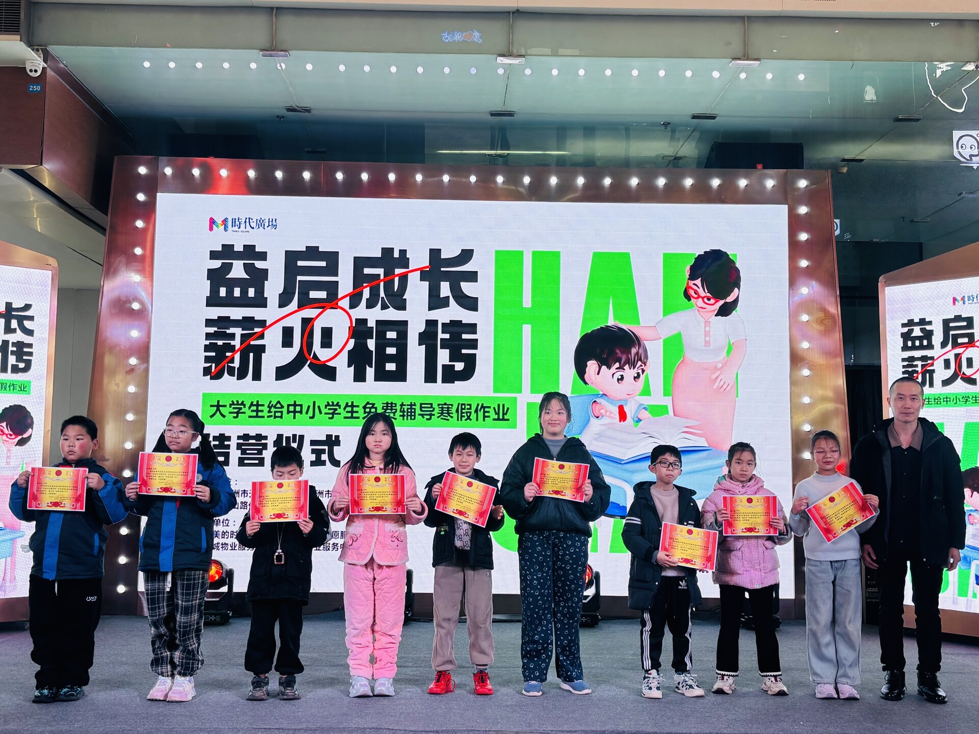 二月的株洲美的时代广场暖意氤氲,由佳美社区居委会主导,共青团株洲市天元区委员会指导,美的城物业、蓝溪谷物业协办,株洲美的时代广场支持,社区志愿队、大学生志愿者参与的“益启成长·薪火相传”寒假作业成长营,圆满落下了帷幕。指导单位、协办单位、支持单位代表,以及社区志愿队、学生家长、志愿者齐聚现场,共同见证了孩子们在这段寒假时光中的成长与蜕变。