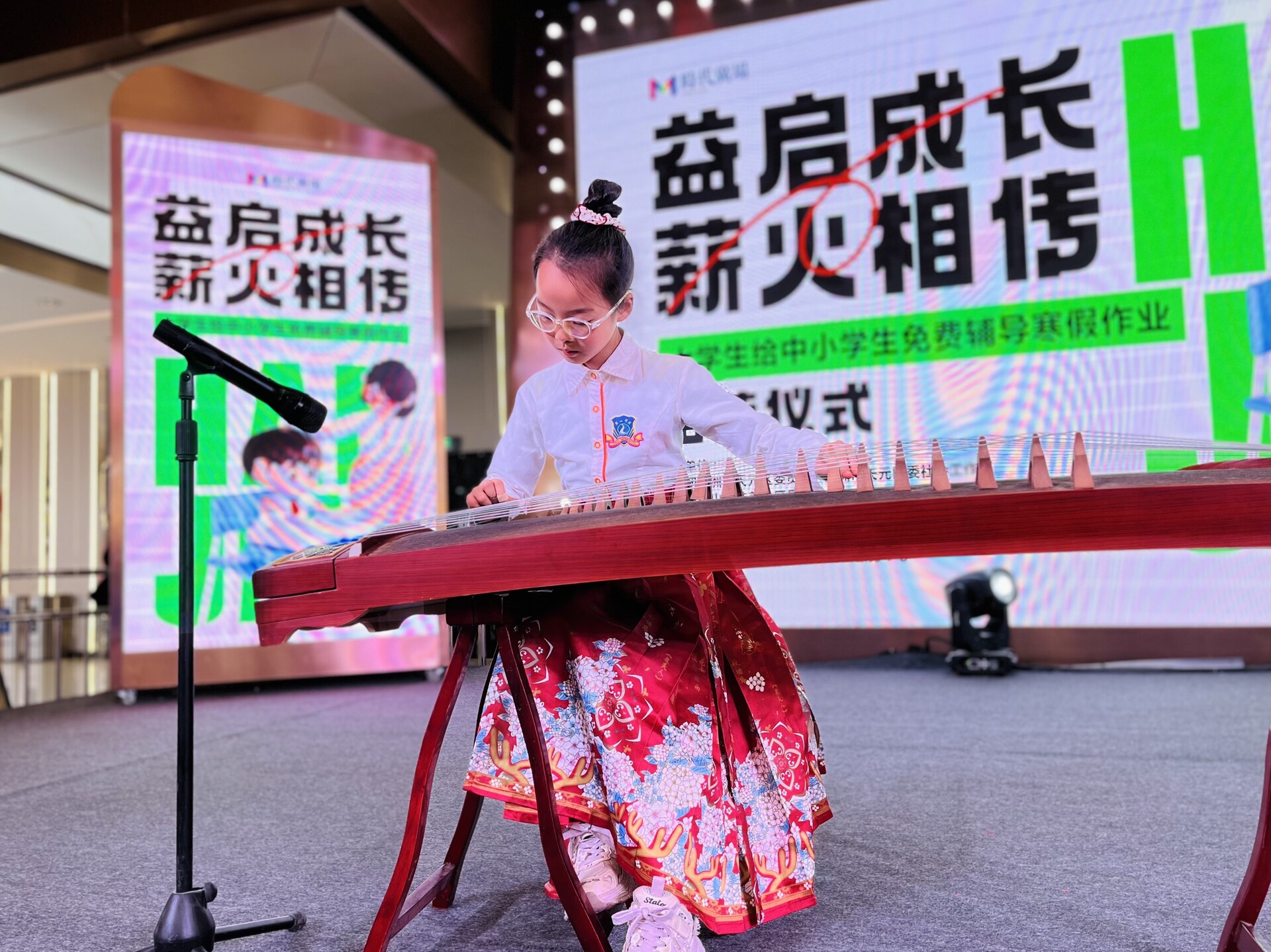 结营仪式上,佳美社区居委会相关负责人致辞,向孩子们送上了诚挚的成长寄语,对共青团株洲市天元区委员会的指导、各协办及支持单位的鼎力相助,以及全体志愿者的无私奉献表示衷心感谢,并勉励孩子们带着十二天的收获与感悟,向阳而生、逐光而行。随后,文艺汇演精彩上演,志愿者们与孩子们轮番登台,歌曲、舞蹈、古筝独奏等节目接连呈现,童真童趣与温情暖意交融共生,生动展现了成长营的丰硕成果。