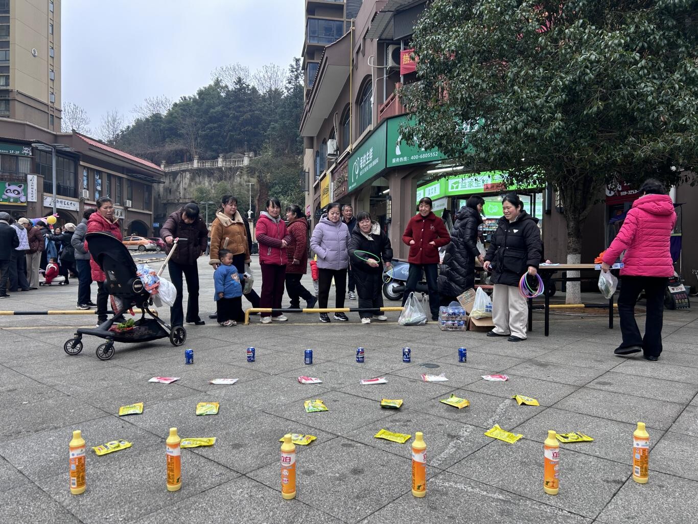 趣味互动区新增投壶项目,四大游戏各有乐趣,奖品均为日常实用好物。套圈区,居民凝神瞄准、精准投掷,洗洁精、豆豉、味精、鸡精、可乐等奖品被陆续领走;灯谜区,大家驻足思索、相互探讨,猜中即可领取一份抽纸;老年保龄球区,老人们精神饱满,挥臂投球,瓶罐倒地的脆响伴着笑声,牙膏、酱油等实用奖品接连送出;投壶区,居民抬手投箭,中壶就能赢得雪碧和面条,现场欢呼声不断。