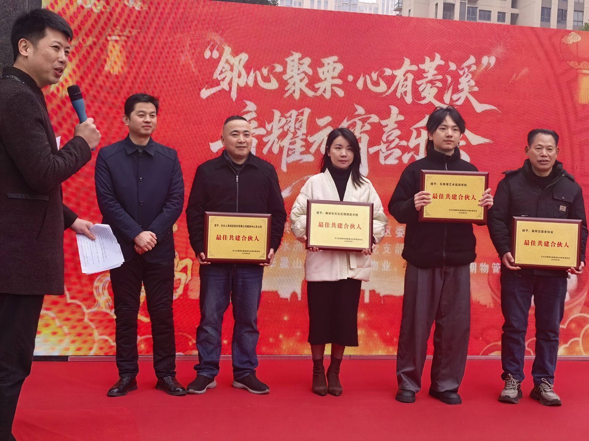 社区隆重举行了“最佳共建合伙人”授牌仪式,10家社区优秀共建单位和18名优秀治理骨干在2025年度社区治理、民生服务和文明创建等工作中作出突出贡献,获得大家认可。